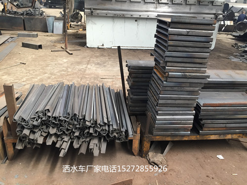 灑水車罐車內(nèi)部的波浪板制作需要用的機器不同一些,首先同樣是通過等離子切割機裁剪出弧形板塊,然后是通過折彎機把弧形鋼板變成波浪的形狀。而波浪板中的人孔則是液壓機一次性沖壓成型的。至于波浪板、人孔的包邊和炮筒則需要用到剪板機。