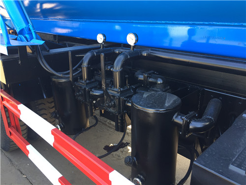 吸污車回油箱位于車架右中部,左通油氣分離器,右連四通閥。