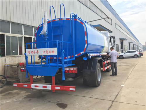 4、東風福瑞卡5噸灑水車的維護與安全:灑水車底盤和發動機部分的使用和保養,按載重灑水車使用說明書執行。水泵的使用和保養,嚴格按其使用維護說明書執行。水源不能有過多雜質,過濾器網應該經常拆洗。冬季來臨前,灑水車應將水泵和水管內的水放空,以防凍裂。灑水車吸水時進水管系統必須保持一定的真空度,才能將水吸入箱內,故進水管系統務必密封可靠.每次工作完畢后,均應將各閥門手柄扳至關閉狀態。各閥門一般不應處于半開狀態,以免影響密封性能。每次工作完畢后,均應及時蓋上進、出口外端的堵蓋。水裝載量不宜超過額定裝載質量。