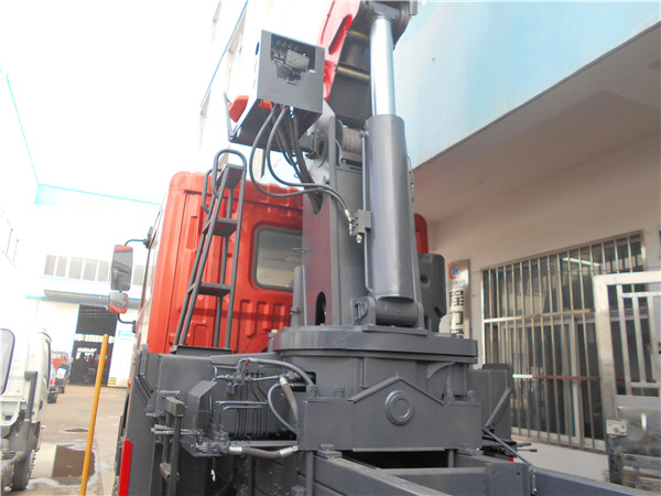 湖北孝感黃老板定購的東風特商單橋底盤配置徐工8噸雙聯泵加長臂吊機、玉柴180馬力國五國五發動機、法士特八檔變速箱(帶高低檔)前橋5噸、10噸后橋、1000鋼絲胎、300MM局部三層大梁、自卸車廂,高端實用車型!