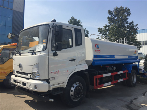 灑水車標準配置和選裝配置,有前沖、后灑、綠化澆灌、遠程水炮等裝置。采用輕質的鋁合金材料,并設置有多重安全防護裝置與報警系統。灑水車罐體采用4毫米Q235碳鋼一次鑄造成型,罐體容積12立方。