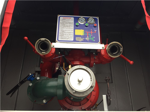 消防灑水車操作系統(tǒng):主要由發(fā)動(dòng)機(jī)帶動(dòng)變速箱,變速箱上安裝的取力器帶動(dòng)灑水泵,灑水泵產(chǎn)生動(dòng)力,將罐體內(nèi)部的液體通過管網(wǎng)噴灑出去。