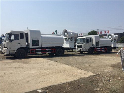 新型抑塵車,主用于煤礦上,有噴灑固化粉狀煤灰的作用,方便清掃運輸等工作,其實抑塵灑水車車還有一個更實用的功能,有個外號叫:霧炮灑水車。一臺霧炮灑水車可噴灑100多米。霧炮又叫環保除塵風送式噴霧機,安裝在車的后半部分。霧炮的原理是在液泵噴水后,利用風機將水噴灑出去,能噴灑120米遠