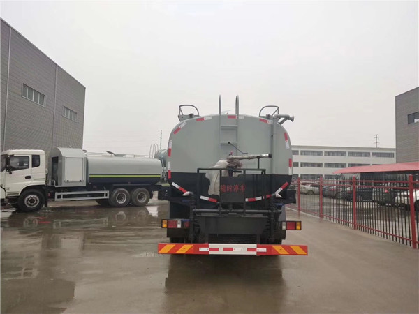 原廠灑水車上裝配置:罐體容積為15立方灑水車,罐體鋼板為4mm碳鋼Q235材質(zhì),罐內(nèi)隔板具有防波作用,以減輕汽車行駛時罐體液體沖擊,罐體及整車外形尺寸按照公告。帶大功率專用灑水泵,泵可自吸自排,整車前沖、后灑、側(cè)噴、帶65消防接口,后平臺帶綠化灑水炮,灑水炮可全方位旋轉(zhuǎn),可連續(xù)調(diào)成直沖狀、大雨、小雨、毛毛雨;前封頭帶水位計,后平臺主管路帶1寸澆花接口,后爬梯。平臺后部帶小安全告知牌:“隨時停車,注意安全”,帶兩根水管及陰陽端。罐體顏色:上白/下藍(lán),銀灰/銀藍(lán),罐體兩側(cè)噴“灑水車、綠化噴灑車”字樣,貼反光標(biāo)示。