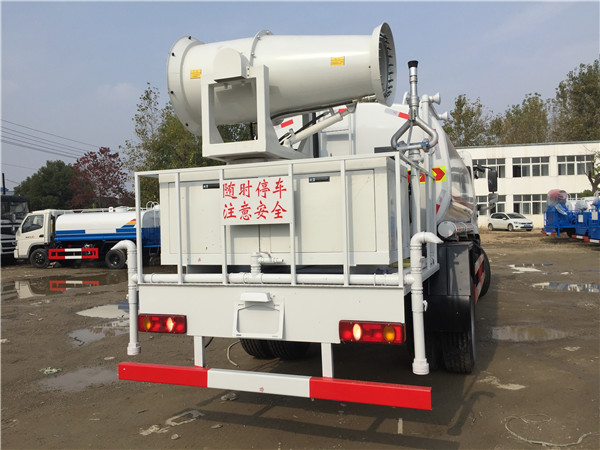 灑水車工藝精良經(jīng)久耐用,前噴后灑,前裝有鴨形噴嘴或圓頭沖嘴,后面裝有圓柱開(kāi)灑水噴嘴或蓮蓬頭噴嘴,后部有一工作平臺(tái),裝配有高壓水炮。后部還可裝8個(gè)噴嘴(選裝)噴水器一般用于沖洗街道。前沖:寬7米 前沖:寬7米