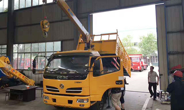 4、小型隨車吊操作時,臂桿提升、下降、回轉要平穩,不得在空中搖晃,同時要盡量避免緊急制動或沖擊振動等現象發生。未采取可靠的技術措施和未經有關技術部門批準,小型隨車吊嚴禁超負荷吊裝,以避免加速機械零件的磨損和造成起重機傾翻。