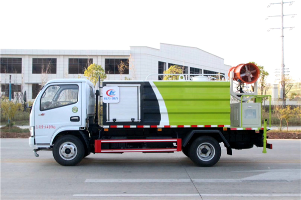 這款霧炮抑塵車配備了4缸柴油發(fā)電機(jī)組,噴灑效果可達(dá)40米。也屬于一款多功能抑塵車,在東風(fēng)多利卡五噸灑水車的基礎(chǔ)上添加了霧炮噴灑功能,主要目的是降塵,和地面噴灑清洗。一車多用,既節(jié)省了購車成本,也達(dá)到了使用要求。