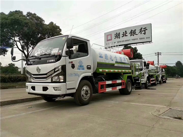國(guó)六東風(fēng)多利卡灑水車,罐體容積5立方米,該車具有免征公告(可免交車輛購(gòu)置稅)。采用武鋼4mm優(yōu)質(zhì)碳鋼板一次卷壓成型,完全做到無(wú)縫成型。罐體內(nèi)設(shè)多道防波隔板,采用高壓氣體試漏檢測(cè),使罐體具有強(qiáng)度高,重心穩(wěn),車輛運(yùn)載安全平穩(wěn)。罐體外表為烤漆,罐體及各保險(xiǎn)杠貼紅白色視覺(jué)反光條,罐體兩側(cè)噴“綠化灑水車”字樣(可按您的要求噴繪字樣),罐體顏色出廠為上白下綠或上白下藍(lán)(可按您的要求噴繪顏色)。