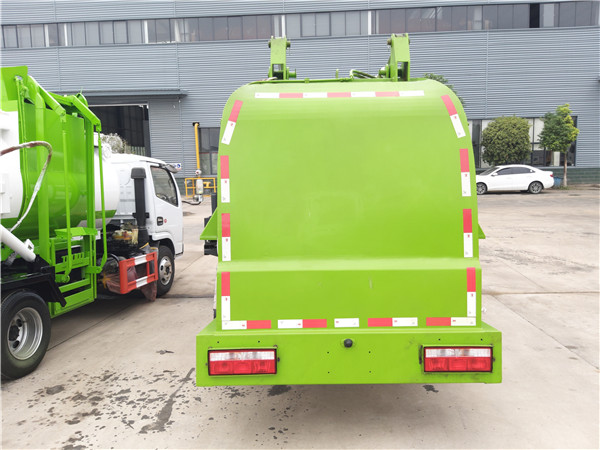 當然,污水最終要從這一臨時空間中排除,不能在廂體前部積垢,則要求推板與廂體底板之間留有合適的間隙,通常為20mm左右,可以保證污水區的污水能夠緩慢流出。廂體設計通常使廂體底板與車架留有1°~3°的夾角,裝載垃圾時,夾角的存在可以使污水緩慢流向污水箱(前提是污水箱還有空間)。要讓污水能流人污水箱,通過結構設計能夠滿足要求,與貼合面密封膠條不存在必然的關系。