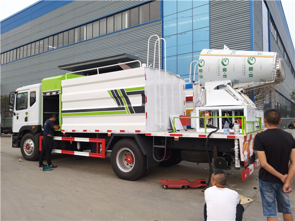 我廠生產的環衛抑塵車根據罐體容積不同,采用4-6mm厚武鋼Q235碳鋼板制作,罐體內置防浪板,避免車輛急剎時液體前涌造成的安全隱患,罐體頂部開有人孔。人孔既可以作為工作人員進行罐內檢修的進出口,也可以作為加水孔用于向罐內加注水;隨車配備大功率專用灑水泵(標配隨州億豐灑水泵,選配杭州威龍灑水泵),比同類灑水泵壓力大、吸程遠、使用壽命長,克服其他灑水泵易被雜物纏住、壓力小、吸水慢的缺點。整車帶前沖(噴)、后灑、側噴、罐體后部帶工作臺,平臺上安裝綠化高壓灑水炮。灑水炮可全方位旋轉,可連續調成直沖狀、開花狀、大雨、小雨、毛毛雨、半霧狀水流,以適合不同狀況下的需求。