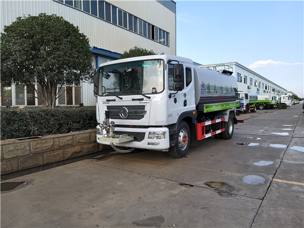 以上情況僅適合于正常使用雙向前沖噴頭的環衛灑水車,如果只是用于壓塵降溫而使用后灑和側噴,其流量則相應減少,噴灑距離會更長。有些用戶希望灑水車流量越大越好,這是比較片面的想法。灑水車流量大,則灑水距離變短,加水次數增多,經濟性欠佳;從路面沖洗來說,水流過大,容易造成低洼處積水,灰塵較多的地方容易形成泥濘帶,干燥后出現塵土飛揚的現象。