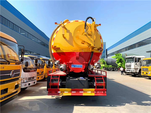 吳先生訂購的這輛東風天龍吸污車配置為:程力高壓清洗吸污車,底盤型號:DFL1250A13,東風公司原裝底盤,新款駕駛室,法士特8檔變速箱,7T前橋,10T后雙橋,輪胎為11.00鋼絲胎,康機270發動機,正宗國六排放標準。根據客戶要求:該高壓清洗吸污車采用一體罐改裝,天津通潔270L泵,清水罐容積約5方,污水罐容積約15方,原廠空調,副發動機用的是420馬力濰柴。