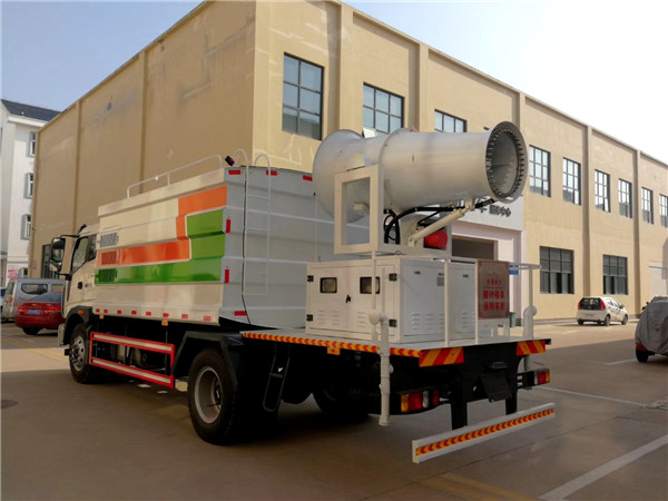 解放J6L抑塵車的基本配置:罐體用4MM碳鋼板制作,罐內隔板具有防波作用,以減低解放J6L抑塵車行駛時罐體液體的沖擊。整車帶一個專用灑水泵(垂直最大吸程6米),灑水寬度14米,射程28米。解放J6L抑塵車配備2個前沖(噴)(能將路面泥巴、塵土、垃圾沖干凈);2個后灑(能均勻地將水灑在路面,一次灑水寬度14米)、2個側噴(花灑)(能均勻地將路旁綠化帶澆灌)、帶1個后工作平臺,平臺上安裝1個綠化灑水高炮(灑水炮可全方位旋轉,可連續調成直沖狀、大雨、小雨、毛毛雨,霧狀可調節沖洗高大樹木),引水時間<5min,流量90m3/h。帶1個消防接頭,帶1個自流閥,1個過濾裝置、人性化爬梯及側防護欄,安裝灑水音樂喇叭。