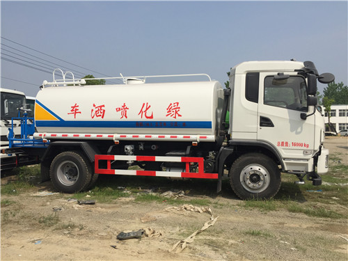 大運灑水車配置有大功率灑水泵,灑水泵帶自吸功能,能垂直吸6米,吸力非常大,還帶有消防接水口,能快速接水,灑水裝置有前沖,后灑,側(cè)噴,后工作平臺,平臺上安全綠化灑水水炮,其灑水車寬度14米,水炮射程可達(dá)30米,綠化灑水水炮可旋轉(zhuǎn)360°,還可調(diào)節(jié)成水柱裝,霧狀,大中小可任意調(diào)解,射程非常遠(yuǎn)。