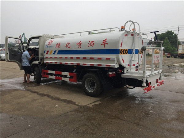 灑水車的工作平臺主要采用花紋防滑板制作而成,防滑板的厚度5毫米,平臺是寬度50-70公分,高度60-80公分,主要是便于工作人員安全操作而設計的尺寸,另外工作平臺上還設計的有腳踏板,便于工作人員上下,平臺上面安裝的綠化灑水炮,主要用于路面沖洗,園林綠化,以及應急消防。綠化灑水炮的工作狀態(tài),可以360度旋轉(zhuǎn),射程30米左右,可以調(diào)節(jié)成大雨、小雨、毛毛雨和柱狀。后灑裝置主要用于路面養(yǎng)護,噴灑寬度15米左右。側(cè)噴主要用于公路綠化帶噴灑綠化。