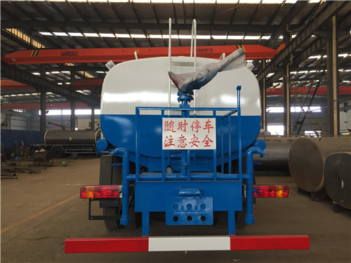改裝配置:罐體用4MM碳鋼板制作,罐內隔板具有防波作用,以減低汽車行駛時罐體液體的沖擊。整車帶一個專用灑水泵(垂直最大吸程6米),灑水寬度14米,射程28米。多功能灑水車配備2個前沖(噴)(能將路面泥巴、塵土、垃圾沖干凈);2個后灑(能均勻地將水灑在路面,一次灑水寬度14米)、2個側噴(花灑)(能均勻地將路旁綠化帶澆灌)、帶1個后工作平臺,平臺上安裝1個綠化灑水高炮(灑水炮可全方位旋轉,可連續調成直沖狀、大雨、小雨、毛毛雨,霧狀可調節沖洗高大樹木),引水時間<5min,流量90m3/h。帶1個消防接頭,帶1個自流閥,1個過濾裝置、人性化爬梯及側防護欄,安裝灑水音樂喇叭。