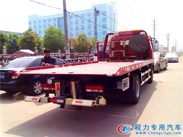 后托臂可以拖一輛3噸以內小型轎車,平板上可以拖一拖,總共可以同時作業二輛小轎車