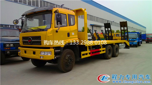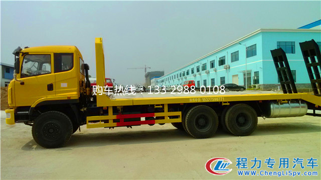 楚風后雙橋平板運輸車采用玉柴260馬力國四發動機,法士特9檔變速箱,457后橋,10.00R20鋼絲胎,整車長10.45米,平板固定寬度2.5米,液壓伸縮到3米。該車有燃油,可輕松上戶辦理營運證。