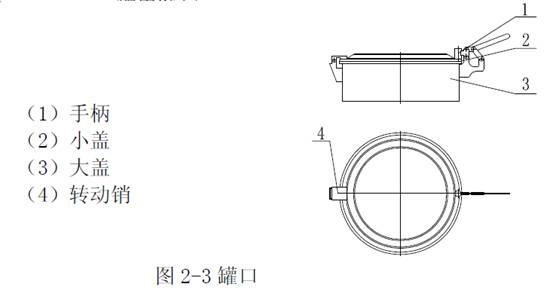 罐口組件:大蓋由螺栓緊固在罐口頸板上,由一個(gè)支銷和一個(gè)護(hù)板小蓋連接在一起,順時(shí)針轉(zhuǎn)小蓋之上手柄可使小蓋壓緊。反轉(zhuǎn),脫開耳板后,小蓋則可打開,大蓋上開有一個(gè)Φ 30 的孔,以便在加水過程中,使罐內(nèi)的壓力與大氣壓力基本相同。
