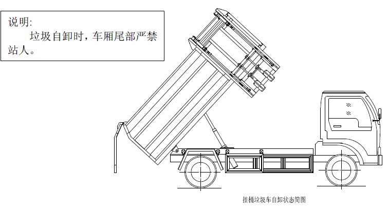將提升操作手柄推至收回位置,箱體右側提升機油缸或頂端上蓋開蓋油缸收回,使提升機帶動垃圾桶向下回落并放置于地面,松開操作手柄使其回到中位,完成一次載,然后松開取力器,該車可以運輸行駛。另注意:箱體內若加裝小刮板,請按操作指示牌的方向推動手柄,使刮板推出,將箱體前端的垃圾推刮到箱體后部,并且在再次裝載垃圾前將手柄反向拉回,使刮板收回,手柄回中位;以防止垃圾倒入刮板和箱體前端而被卡??;若箱體內沒有加裝小刮板,為防止垃圾僅僅裝在箱體前端,這時可將自卸操作手柄推至開啟位置,箱體底部自卸油缸伸出,使箱體繞自卸翻轉座旋轉舉起一定角度,使箱體前端的垃圾因自重而滑到箱體后部,完成后將操作手柄反向拉回或回中位,箱體下落放平松開手柄。