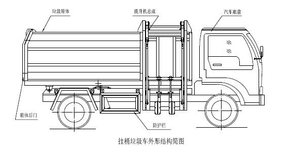 程力專用汽車掛桶式垃圾車(以下簡稱垃圾車)是用于城鎮(zhèn)內的垃圾收集、轉運、卸料作業(yè)的專用車輛。該車是由汽車底盤、自卸油缸、提升機總成、頂蓋(選裝)、附車架、垃圾箱體等組成。該車操作由液壓控制系統(tǒng)來完成,控制方式可以為手動或電氣控。該車主要用于城鎮(zhèn)垃圾的垃圾收集、轉運和卸料。操作開提升控制閥將垃圾桶隨提升機向上升起并翻轉傾斜,桶內垃圾被倒入車廂內完成垃圾單次裝載,反向操作提升控制閥,垃圾桶隨提升機而放下;完成垃圾裝載后再進行傾卸時,操作自卸控制閥,垃圾箱繞后翻轉軸傾斜體舉,箱體后門打開,垃圾傾卸出箱體;起該車由液壓控制系統(tǒng)來完成該車的提升機的上升和下降及垃圾的自卸功能,降低了工人的勞動強度和改善了工作環(huán)境。該垃圾車的收運方式是目前國內泛采用的垃圾收集轉運方式,其專用裝置的功能均以汽車發(fā)動機為動力,通過液壓機構手動或電控、氣控來實現(xiàn)。車輛的箱體采用優(yōu)質炭鋼板全密封焊接結構,具有強度高、重量輕,防塵、防溢不產生二次污染等優(yōu)點。垃圾車整車基本性能與原底盤車相同,用戶請參閱原底盤車使用手冊。本用說明書僅介紹專用改裝部分的有關操作、檢查和維修保養(yǎng)。在使用車輛前,我們強烈要求您能夠通讀本說明書,并對其中的操作程序做到得心應手。我廠對產品將會進一步改進。產品的改進、性能的提高、結構的不斷完善恕不另行通知,從而有某些說明不適用于您的特定車輛,敬請諒解。